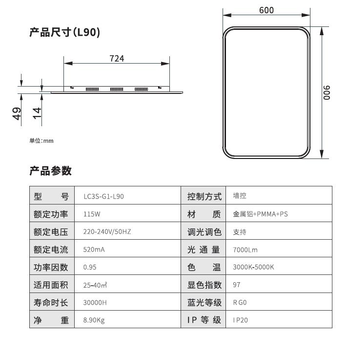 C2护眼吸顶灯-方形光通量为7700lm